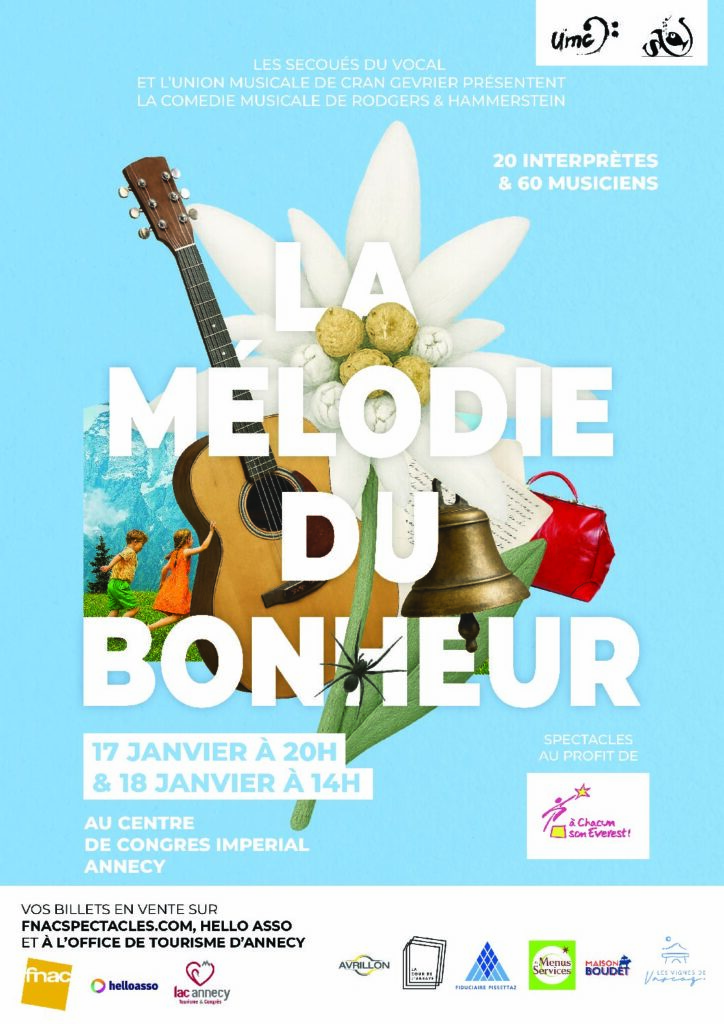 La prochaine représentation de notre spectacle avec Les Secoués du Vocal aura lieu les samedi 17 et dimanche 18 janvier 2026 à Annecy, au profit de l’association A chacun son Everest, qui accompagne des enfants atteints de cancer ou des femmes en rémission, pour les aider à affronter cette épreuve et l’après-maladie en retrouvant confiance et joie de vivre.