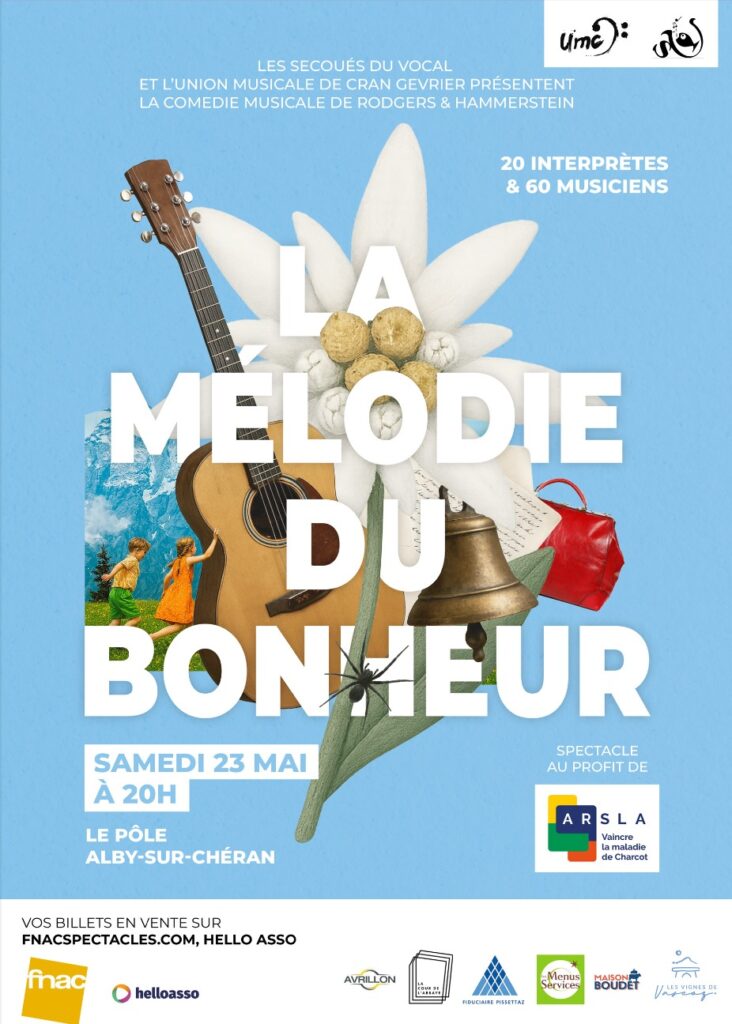 La prochaine représentation de notre spectacle avec Les Secoués du Vocal aura lieu le samedi 23 mai mars 2026 à Alby-sur-Chéran, au profit de l’association ARSLA qui lutte contre la maladie de Charcot.