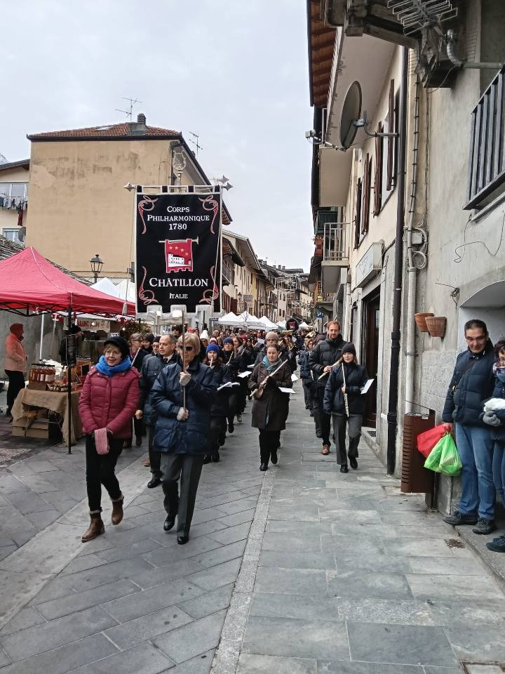 Les deux harmonies ont ensuite joué pendant l’office religieux et ont défilé à travers les ruelles de Châtillon avant de partager un délicieux repas.